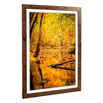 Big Box Art Framed Print of Autumn Forest with a Pond Landscape Design Wall Picture Home Decor for Kitchen, Living Room, Bedroom, Hallway, Walnut, A2 / 24.5x18 Inch 62x45cm