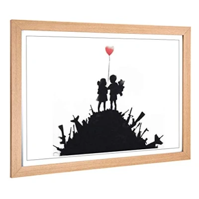 Big Box Art Framed Print of Banksy Balloon Graffiti Design Wall Picture Home Decor for Kitchen, Living Room, Bedroom, Hallway, Oak, A2 / 24.5x18 Inch 62x45cm