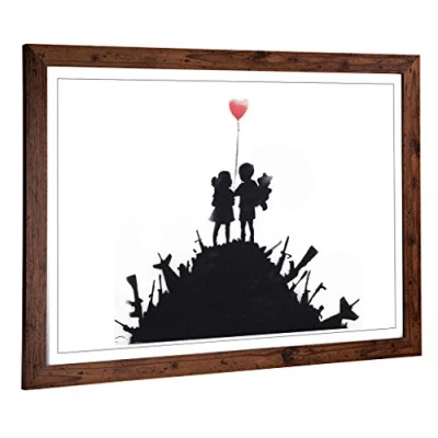 Big Box Art Framed Print of Banksy Balloon Graffiti Design Wall Picture Home Decor for Kitchen, Living Room, Bedroom, Hallway, Walnut, A2 / 24.5x18 Inch 62x45cm