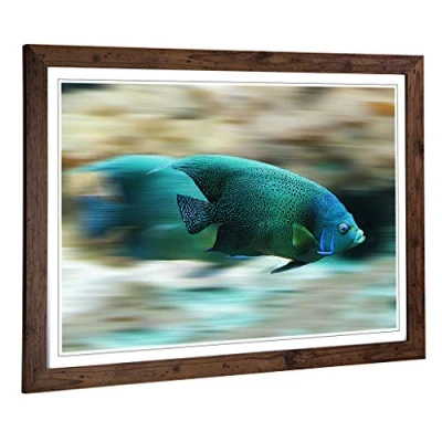 Big Box Art Framed Print of Blue Fish Design Wall Picture Home Decor for Kitchen, Living, Dining Room, Lounge, Bedroom, Hallway, Office, Walnut, A2 / 24.5x18 Inch 62x45cm