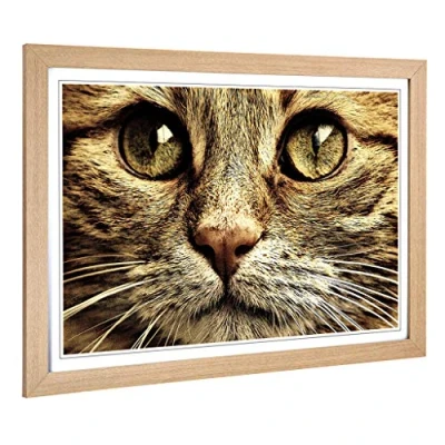 Big Box Art Framed Print of Cat Eyes Design Wall Picture Home Decor for Kitchen, Living, Dining Room, Lounge, Bedroom, Hallway, Office, Oak, A2 / 24.5x18 Inch 62x45cm