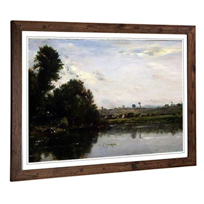 Big Box Art Framed Print of Charles Francois Daubigny Washerwoman Design Wall Picture Home Decor for Kitchen, Living Room, Bedroom, Hallway, Walnut, A2 / 24.5x18 Inch 62x45cm