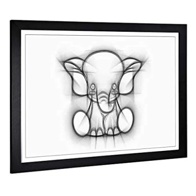 Big Box Art Framed Print of Childrens Elephant Design Wall Picture Home Decor for Kitchen, Living, Dining Room, Lounge, Bedroom, Hallway, Office, Black, A2 / 24.5x18 Inch 62x45cm