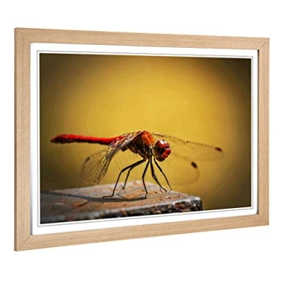 Big Box Art Framed Print of Dragonfly Insect (3) Design Wall Picture Home Decor for Kitchen, Living, Dining Room, Lounge, Bedroom, Hallway, Office, Oak, A2 / 24.5x18 Inch 62x45cm