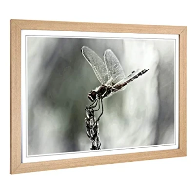 Big Box Art Framed Print of Dragonfly Insect (4) Design Wall Picture Home Decor for Kitchen, Living, Dining Room, Lounge, Bedroom, Hallway, Office, Oak, A2 / 24.5x18 Inch 62x45cm