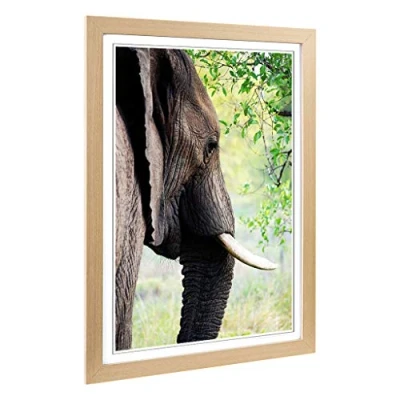 Big Box Art Framed Print of Elephant (2) Design Wall Picture Home Decor for Kitchen, Living, Dining Room, Lounge, Bedroom, Hallway, Office, Oak, A2 / 24.5x18 Inch 62x45cm