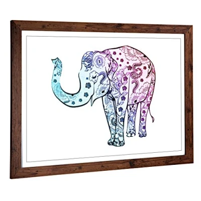 Big Box Art Framed Print of Elephant (2) Design Wall Picture Home Decor for Kitchen, Living, Dining Room, Lounge, Bedroom, Hallway, Office, Walnut, A2 / 24.5x18 Inch 62x45cm