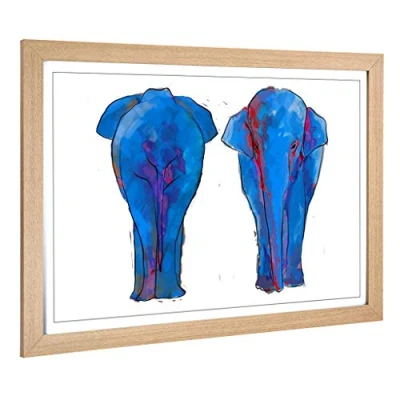 Big Box Art Framed Print of Elephant (3) Design Wall Picture Home Decor for Kitchen, Living, Dining Room, Lounge, Bedroom, Hallway, Office, Oak, A2 / 24.5x18 Inch 62x45cm