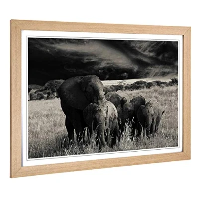 Big Box Art Framed Print of Elephant 4 Design Wall Picture Home Decor for Kitchen, Living, Dining Room, Lounge, Bedroom, Hallway, Office, Oak, A2 / 24.5x18 Inch 62x45cm
