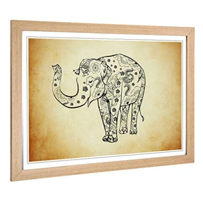 Big Box Art Framed Print of Elephant (4) Design Wall Picture Home Decor for Kitchen, Living, Dining Room, Lounge, Bedroom, Hallway, Office, Oak, A2 / 24.5x18 Inch 62x45cm