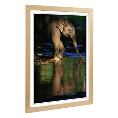 Big Box Art Framed Print of Elephant 5 Design Wall Picture Home Decor for Kitchen, Living, Dining Room, Lounge, Bedroom, Hallway, Office, Oak, A2 / 24.5x18 Inch 62x45cm
