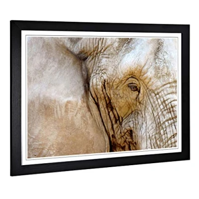 Big Box Art Framed Print of Elephant Eye Design Wall Picture Home Decor for Kitchen, Living, Dining Room, Lounge, Bedroom, Hallway, Office, Black, A2 / 24.5x18 Inch 62x45cm