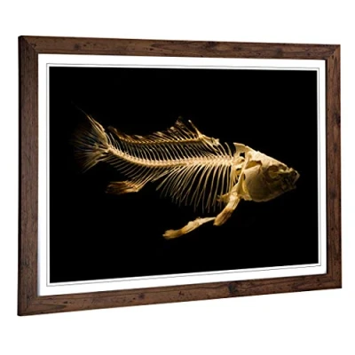 Big Box Art Framed Print of Fish Skeleton Design Wall Picture Home Decor for Kitchen, Living, Dining Room, Lounge, Bedroom, Hallway, Office, Walnut, A2 / 24.5x18 Inch 62x45cm