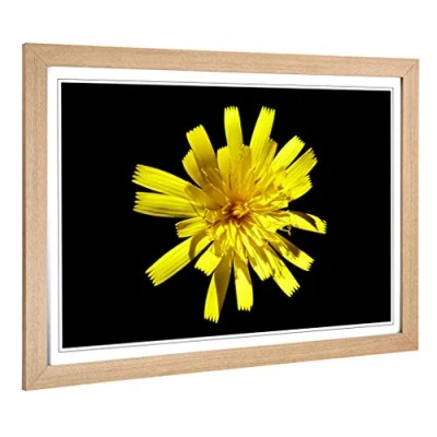 Big Box Art Framed Print of Flower Macro Yellow Design Wall Picture Home Decor for Kitchen, Living, Dining Room, Lounge, Bedroom, Hallway, Office, Oak, A2 / 24.5x18 Inch 62x45cm