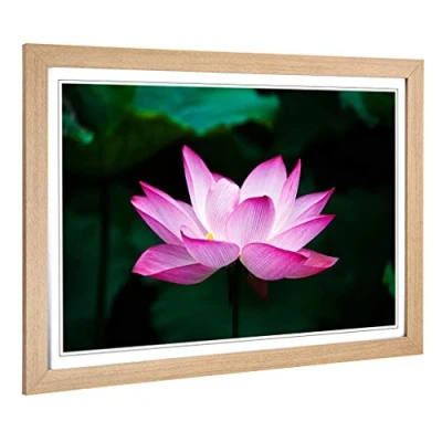 Big Box Art Framed Print of Flower Pink Lotus Design Wall Picture Home Decor for Kitchen, Living, Dining Room, Lounge, Bedroom, Hallway, Office, Oak, A2 / 24.5x18 Inch 62x45cm