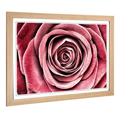 Big Box Art Framed Print of Flower Pink Rose (3) Design Wall Picture Home Decor for Kitchen, Living, Dining Room, Lounge, Bedroom, Hallway, Office, Oak, A2 / 24.5x18 Inch 62x45cm