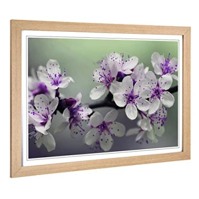 Big Box Art Framed Print of Flower Purple Blossoms Design Wall Picture Home Decor for Kitchen, Living, Dining Room, Lounge, Bedroom, Hallway, Office, Oak, A2 / 24.5x18 Inch 62x45cm