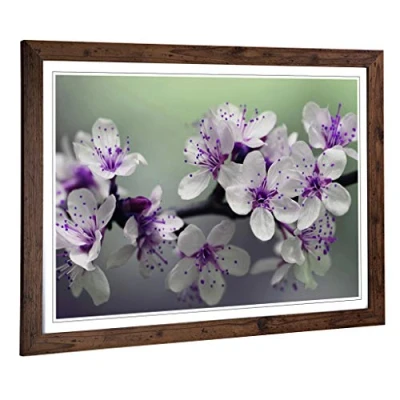 Big Box Art Framed Print of Flower Purple Blossoms Design Wall Picture Home Decor for Kitchen, Living, Dining Room, Lounge, Bedroom, Hallway, Office, Walnut, A2 / 24.5x18 Inch 62x45cm