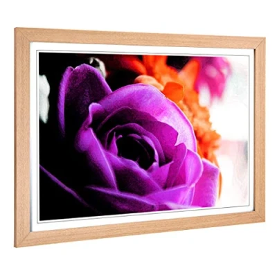Big Box Art Framed Print of Flower Purple Rose Design Wall Picture Home Decor for Kitchen, Living, Dining Room, Lounge, Bedroom, Hallway, Office, Oak, A2 / 24.5x18 Inch 62x45cm