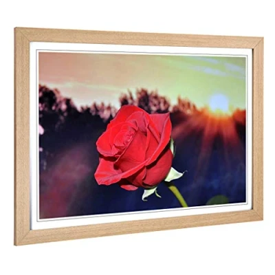 Big Box Art Framed Print of Flower Red Rose (1) Design Wall Picture Home Decor for Kitchen, Living, Dining Room, Lounge, Bedroom, Hallway, Office, Oak, A2 / 24.5x18 Inch 62x45cm