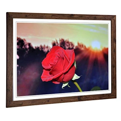 Big Box Art Framed Print of Flower Red Rose (1) Design Wall Picture Home Decor for Kitchen, Living, Dining Room, Lounge, Bedroom, Hallway, Office, Walnut, A2 / 24.5x18 Inch 62x45cm