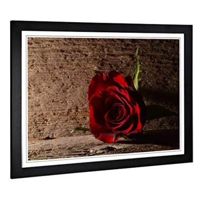 Big Box Art Framed Print of Flower Red Rose (9) Design Wall Picture Home Decor for Kitchen, Living, Dining Room, Lounge, Bedroom, Hallway, Office, Black, A2 / 24.5x18 Inch 62x45cm