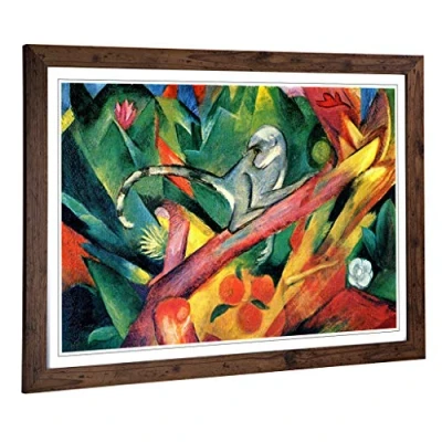 Big Box Art Framed Print of Franz Marc Monkey Design Wall Picture Home Decor for Kitchen, Living, Dining Room, Lounge, Bedroom, Hallway, Office, Walnut, A2 / 24.5x18 Inch 62x45cm