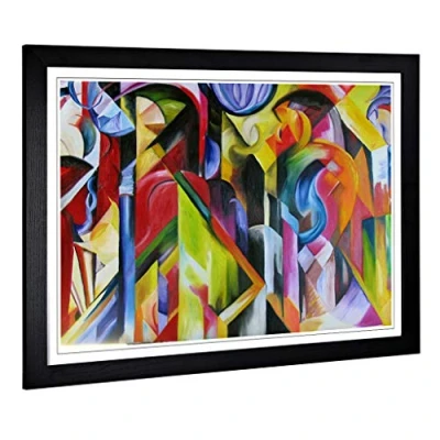 Big Box Art Framed Print of Franz Marc Stables Design Wall Picture Home Decor for Kitchen, Living, Dining Room, Lounge, Bedroom, Hallway, Office, Black, A2 / 24.5x18 Inch 62x45cm