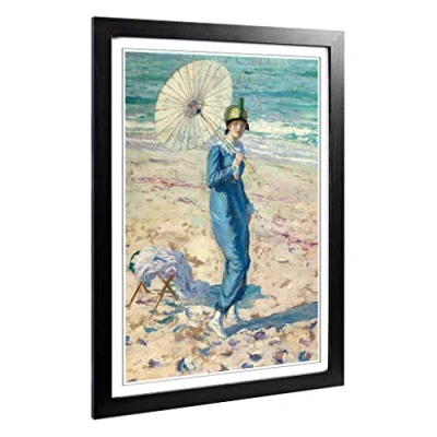 Big Box Art Framed Print of Frederick Carl Frieseke Lady on The Beach Design Wall Picture Home Decor for Kitchen, Living Room, Bedroom, Hallway, Black, A2 / 24.5x18 Inch 62x45cm