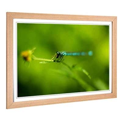 Big Box Art Framed Print of Green Dragonfly Design Wall Picture Home Decor for Kitchen, Living, Dining Room, Lounge, Bedroom, Hallway, Office, Oak, A2 / 24.5x18 Inch 62x45cm
