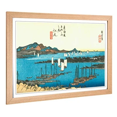 Big Box Art Framed Print of Hiroshige Japanese Oriental Ejiri Design Wall Picture Home Decor for Kitchen, Living Room, Bedroom, Hallway, Oak, A2 / 24.5x18 Inch 62x45cm