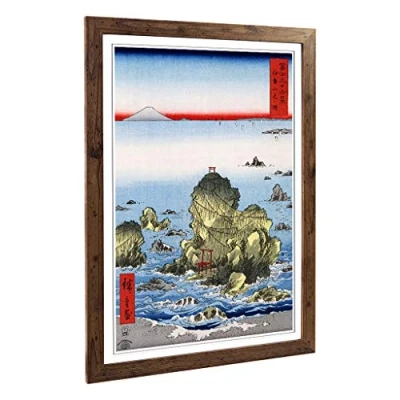 Big Box Art Framed Print of Hiroshige Japanese Oriental Futamigaura Design Wall Picture Home Decor for Kitchen, Living Room, Bedroom, Hallway, Walnut, A2 / 24.5x18 Inch 62x45cm
