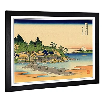 Big Box Art Framed Print of Hokusai Japanese Oriental Enoshima Design Wall Picture Home Decor for Kitchen, Living Room, Bedroom, Hallway, Black, A2 / 24.5x18 Inch 62x45cm