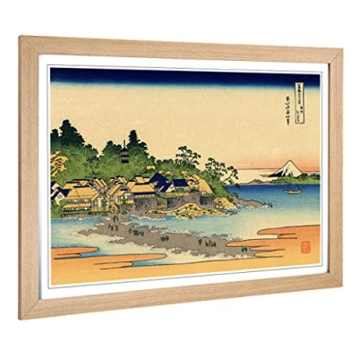 Big Box Art Framed Print of Hokusai Japanese Oriental Enoshima Design Wall Picture Home Decor for Kitchen, Living Room, Bedroom, Hallway, Oak, A2 / 24.5x18 Inch 62x45cm