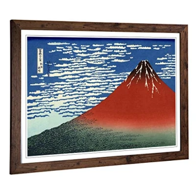 Big Box Art Framed Print of Hokusai Japanese Oriental Red Mount Fuji Design Wall Picture Home Decor for Kitchen, Living Room, Bedroom, Hallway, Walnut, A2 / 24.5x18 Inch 62x45cm