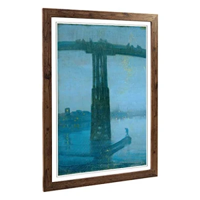 Big Box Art Framed Print of James McNeill Whistler Battersea Bridge Nocturne Design Wall Picture Home Decor for Kitchen, Living Room, Bedroom, Hallway, Walnut, A2 / 24.5x18 Inch 62x45cm