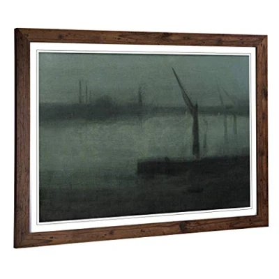 Big Box Art Framed Print of James McNeill Whistler Nocturne Blue and Silver Design Wall Picture Home Decor for Kitchen, Living Room, Bedroom, Hallway, Walnut, A2 / 24.5x18 Inch 62x45cm