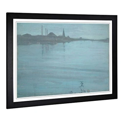 Big Box Art Framed Print of James McNeill Whistler Nocturne in Blue and Silver Design Wall Picture Home Decor for Kitchen, Living Room, Bedroom, Office, Black, A2 / 24.5x18 Inch 62x45cm