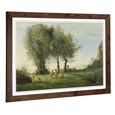Big Box Art Framed Print of Jean Baptiste Camille Corot Children Design Wall Picture Home Decor for Kitchen, Living Room, Bedroom, Hallway, Walnut, A2 / 24.5x18 Inch 62x45cm