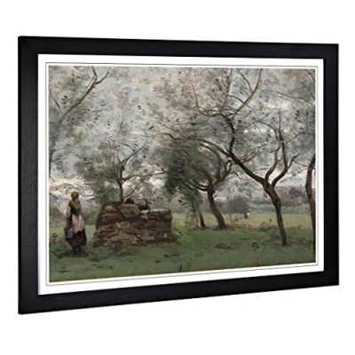 Big Box Art Framed Print of Jean Baptiste Camille Corot Woman Working Design Wall Picture Home Decor for Kitchen, Living Room, Bedroom, Hallway, Black, A2 / 24.5x18 Inch 62x45cm