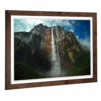 Big Box Art Framed Print of Landscape Angel Falls Waterfall Design Wall Picture Home Decor for Kitchen, Living Room, Bedroom, Hallway, Walnut, A2 / 24.5x18 Inch 62x45cm