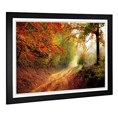Big Box Art Framed Print of Landscape Autumn Fall Woodland Forest Design Wall Picture Home Decor for Kitchen, Living Room, Bedroom, Hallway, Black, A2 / 24.5x18 Inch 62x45cm