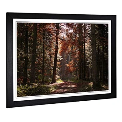 Big Box Art Framed Print of Landscape Autumn Forest Woodland Design Wall Picture Home Decor for Kitchen, Living Room, Bedroom, Hallway, Black, A2 / 24.5x18 Inch 62x45cm