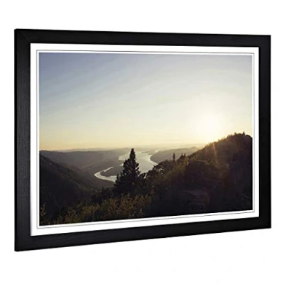 Big Box Art Framed Print of Landscape Dawn Forest Design Wall Picture Home Decor for Kitchen, Living, Dining Room, Lounge, Bedroom, Hallway, Office, Black, A2 / 24.5x18 Inch 62x45cm