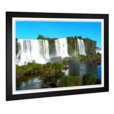 Big Box Art Framed Print of Landscape Iguazu Falls Brazil Waterfall Design Wall Picture Home Decor for Kitchen, Living Room, Bedroom, Hallway, Black, A2 / 24.5x18 Inch 62x45cm