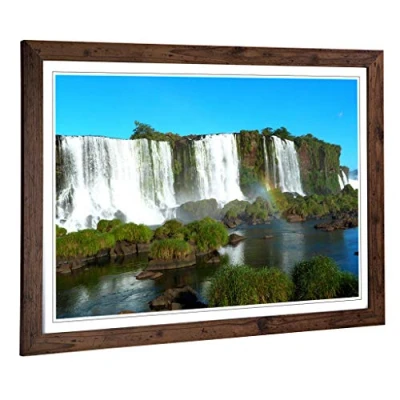 Big Box Art Framed Print of Landscape Iguazu Falls Brazil Waterfall Design Wall Picture Home Decor for Kitchen, Living Room, Bedroom, Hallway, Walnut, A2 / 24.5x18 Inch 62x45cm