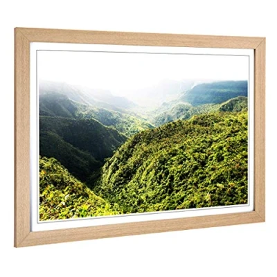 Big Box Art Framed Print of Landscape Mauritius Mountains Design Wall Picture Home Decor for Kitchen, Living, Dining Room, Bedroom, Hallway, Office, Oak, A2 / 24.5x18 Inch 62x45cm