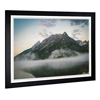 Big Box Art Framed Print of Landscape Misty Mountain Design Wall Picture Home Decor for Kitchen, Living, Dining Room, Bedroom, Hallway, Office, Black, A2 / 24.5x18 Inch 62x45cm