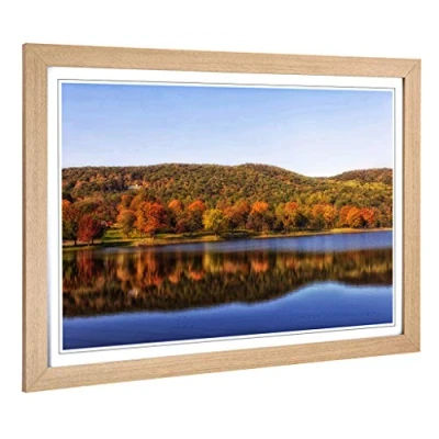 Big Box Art Framed Print of Landscape Squantz Pond Connecticut Forest Design Wall Picture Home Decor for Kitchen, Living Room, Bedroom, Hallway, Oak, A2 / 24.5x18 Inch 62x45cm