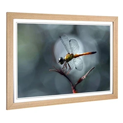 Big Box Art Framed Print of Macro Dragonfly Design Wall Picture Home Decor for Kitchen, Living, Dining Room, Lounge, Bedroom, Hallway, Office, Oak, A2 / 24.5x18 Inch 62x45cm